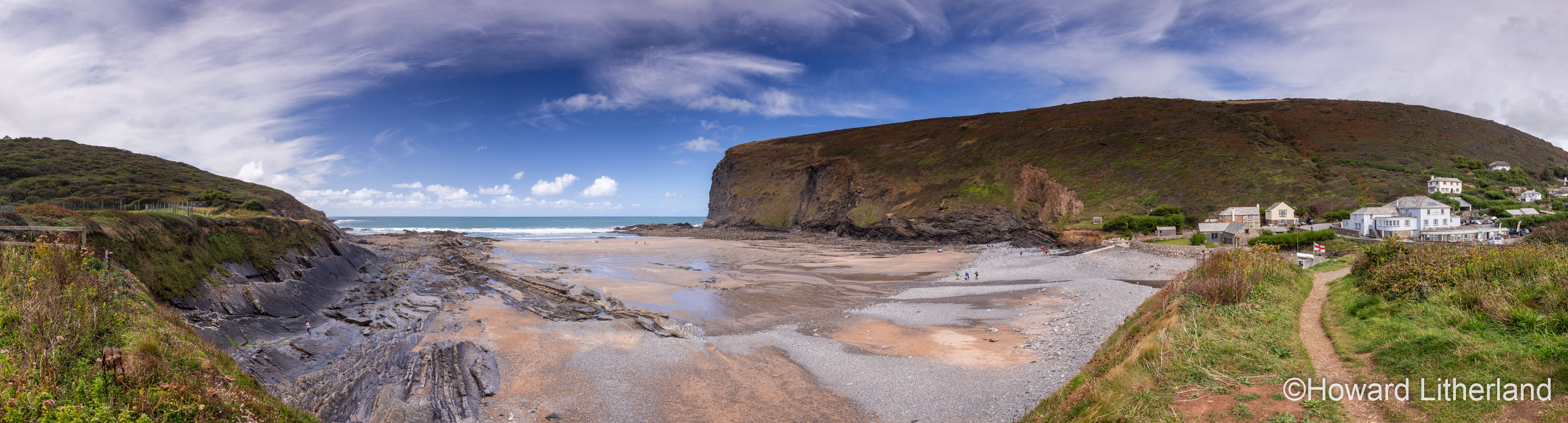 I captured this panoramic collage of Crackington Haven on a sunny afternoon at low tide halfway up the coastal path that led up from the beach onto the cliff edge, and the image features the extraordinary rock formations exposed by the receding ocean.