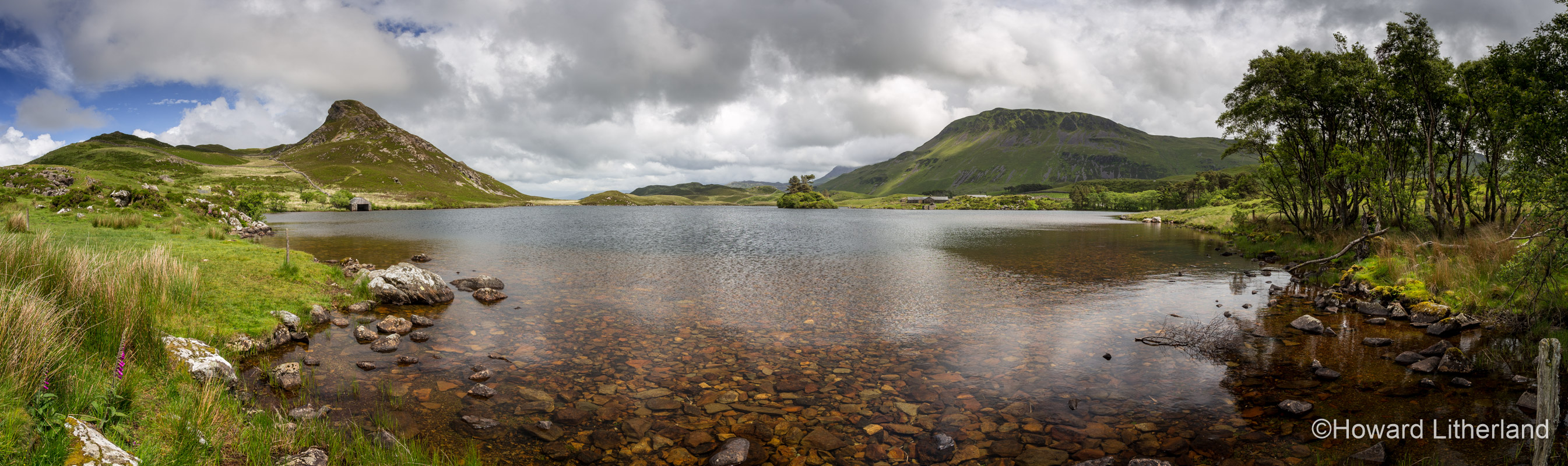 Anyhow, just after we got back from our hike, and before heading down to spend the evening at Fairbourne to watch the sunset over the Mawddach Estuary, I took the opportunity to capture a series of overlapping still images, encompassing the entire sweep of the lakes, to merge later in Adobe Lightroom to make this lovely panoramic collage.