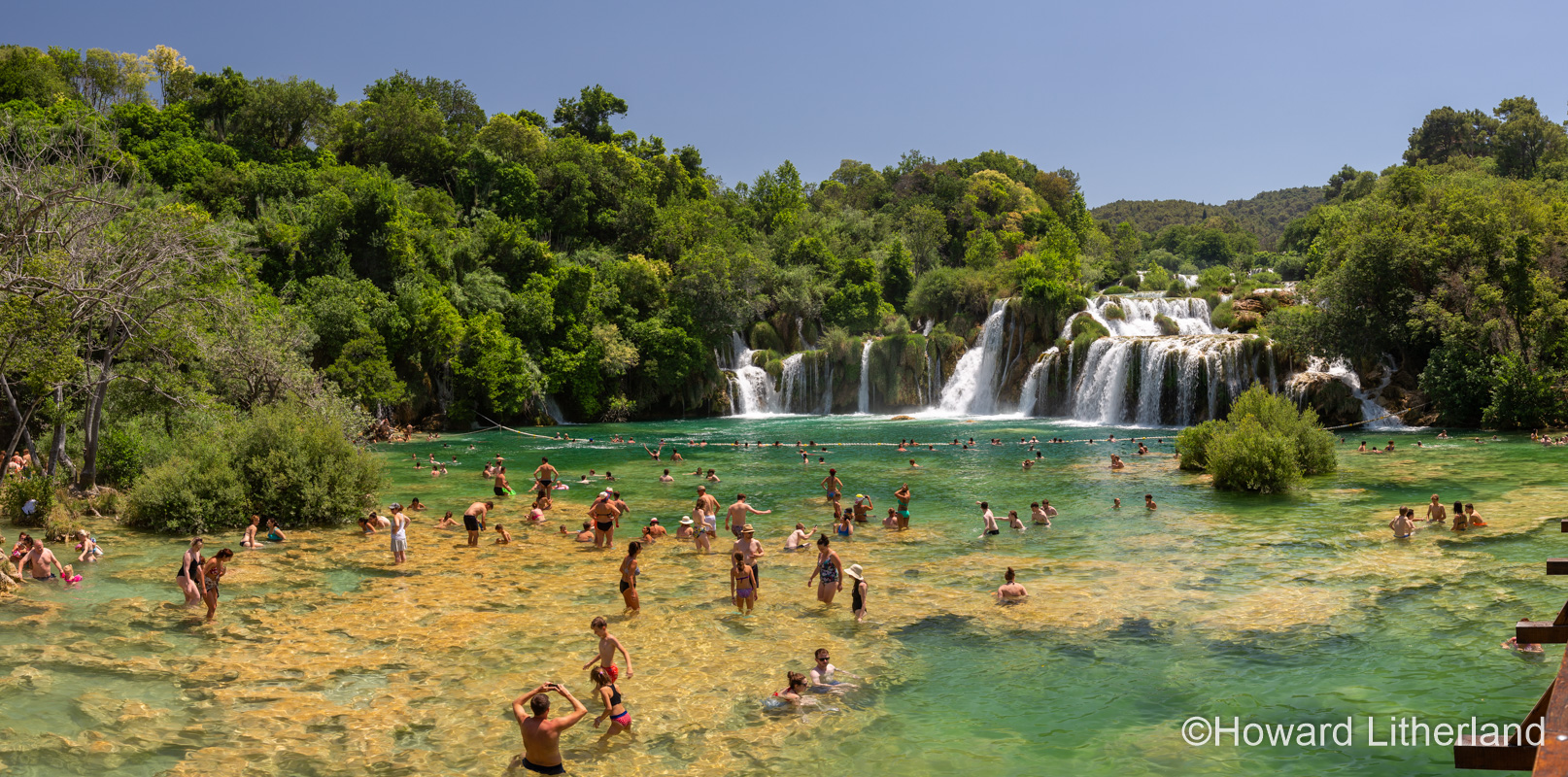 It was a very hot day, so we weren't surprised to find the Krka river below the Skradinski Buk waterfalls full of families enjoying the cooling waters in the shallows.