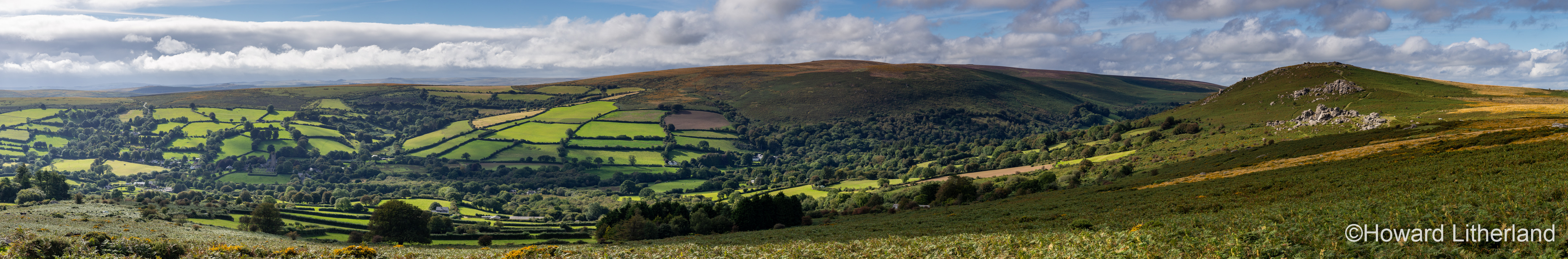 Laid out below me in all its wild glory and dappled with sunlight and shadow, this is a panoramic view out over Dartmoor from the high ground at Hemsworthy Gate on the eastern side of the National Park.