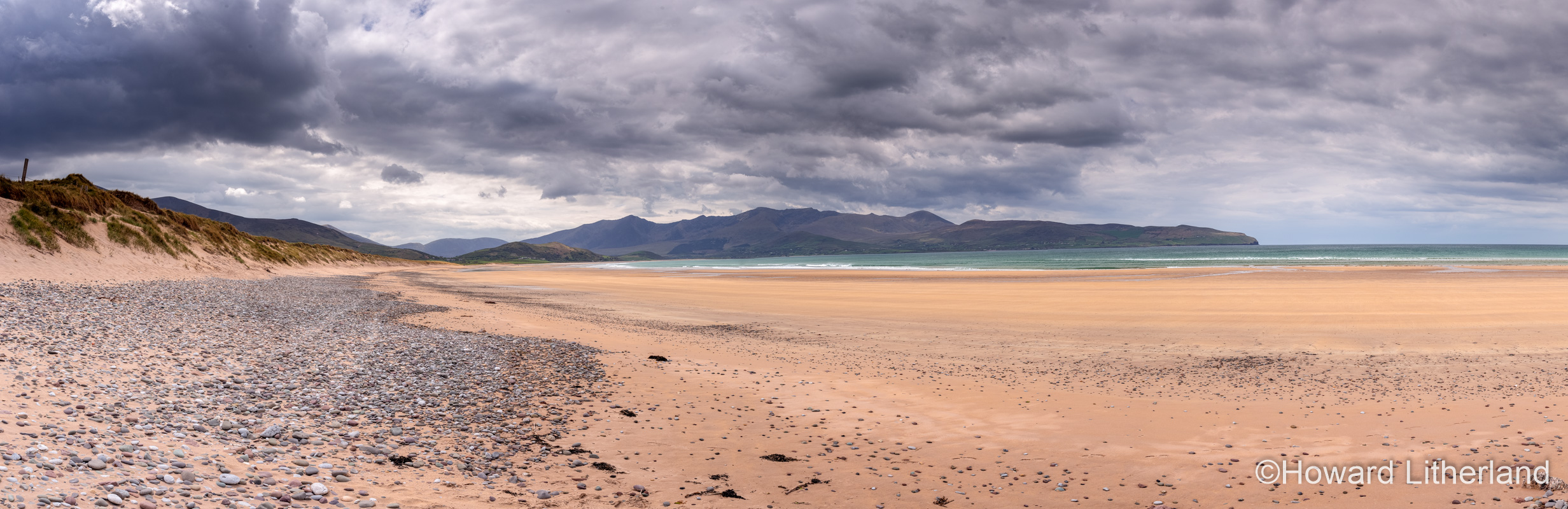 Such as this panoramic view overlooking the vast, deserted beach at Stradbally Strand, with the Brandon mountains rearing skywards across the bay.
