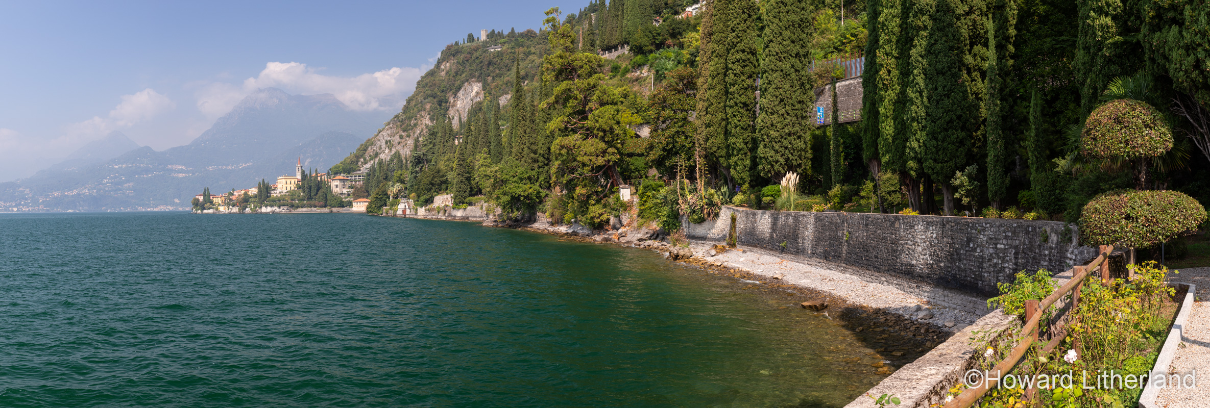 This panoramic collage was shot from the beautiful gardens of the Villa Monastero, looking back along the lake shore to Varenna.