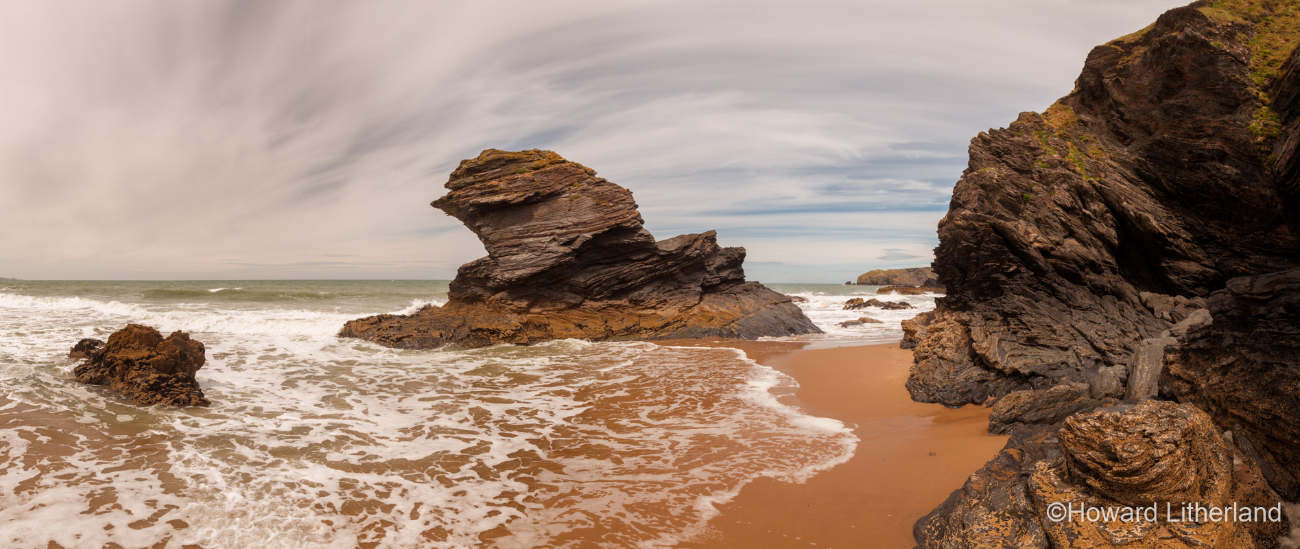 The tide turned during our visit, so I took advantage of the newly washed and exposed sand to take a series of images around the dramatic rock formations at the north end of the beach, without footprints marring the effect.