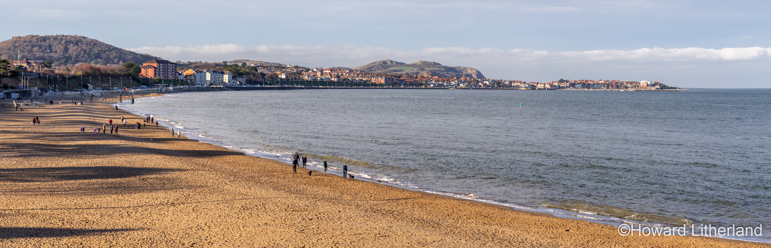 This panoramic view, photographed from the viewing platform on the roof of Porth Eirias, shows the sweep of Colwyn Bay all the way round to Rhos-on-Sea on an unusually sunny day in late December 2019.
