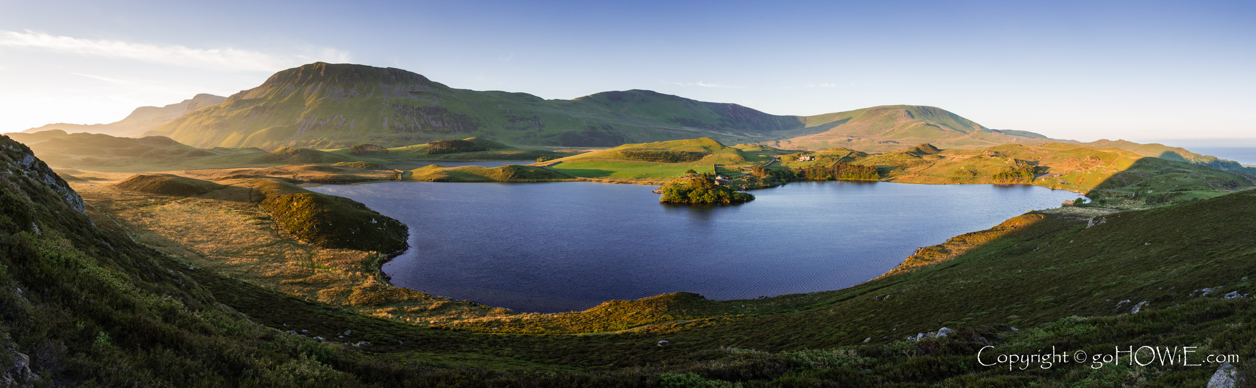 So I got all my camera gear and tripod back out and set up to shoot the several overlapping still images required to make this panoramic composition, showing the lakes and surrounding mountains in all their glory.