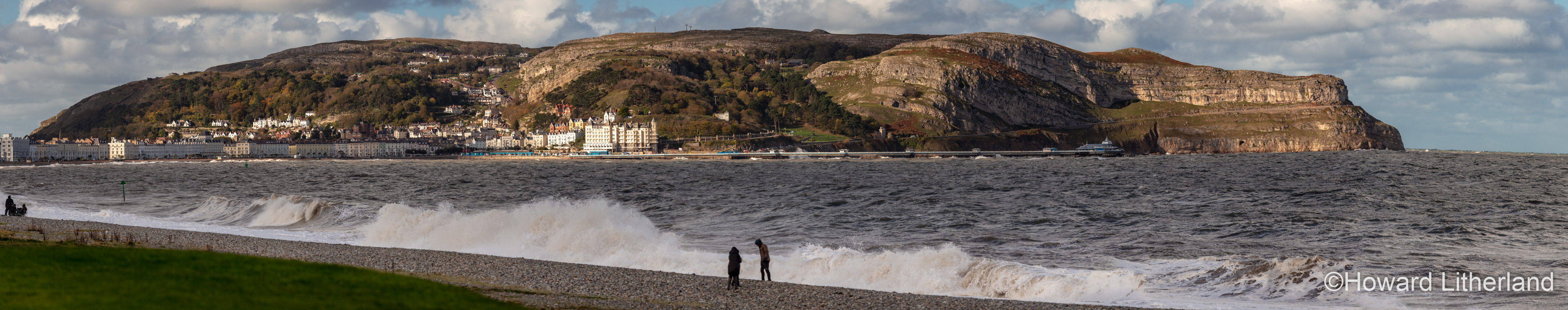Taken on a day of blustery winds and broken cloud, the play of sunlight and shadow over the Orme, together with large, crashing waves on the foreshore proved irresitable.