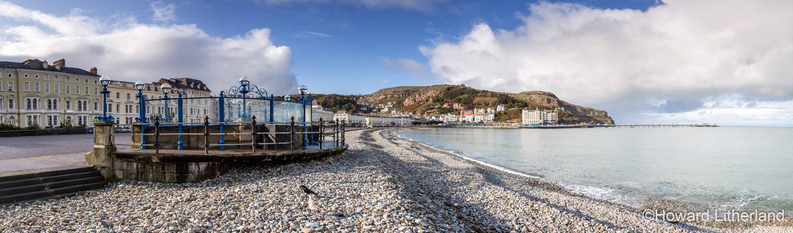 As we walked along the promenade we arrived at the old, but lovingly maintained, 1920s' bandstand, just as the clouds above parted to allow a brief burst of sunlight to flood the North Shore, pier and Great Orme headland.