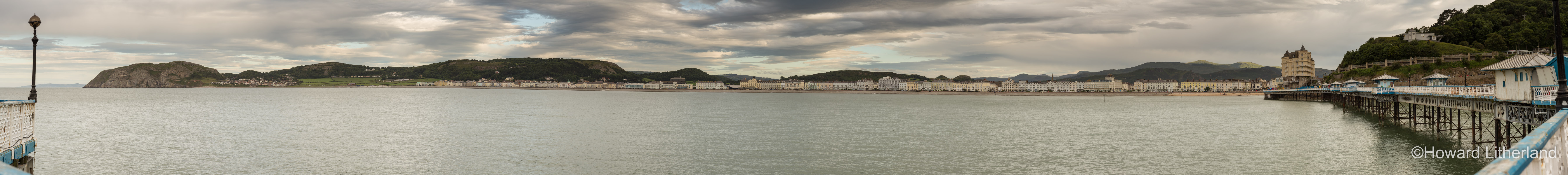 Of course I'd brought my camera, so while Liz chatted away with her friend and I talked signal to noise ratios with her sound engineer husband I set up my gear and took advantage of the unique viewpoint to take the thirty or so overlapping frames required to make this panoramic collage of Llandudno Bay in its entirety, framed by portions of the pier at either end of the composition.