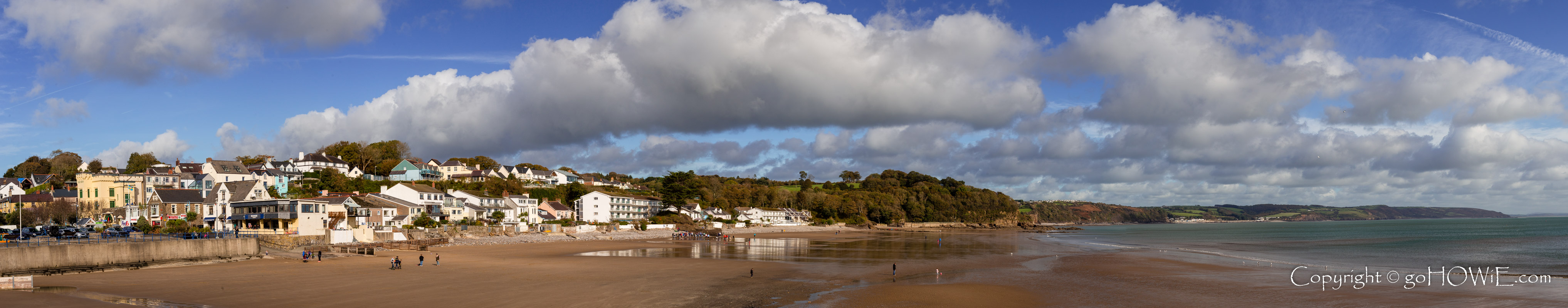 Of course I toted my camera and tripod with me on these excursions, and used the high vantage point of the harbour wall to capture this panoramic view back over the beach and town.